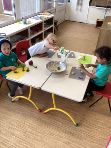 Once we arrived, we gathered to listen carefully to Alice, who helps look after the orchard. She explained which trees we were allowed to pick from. After exploring and picking apples, we sat down together at base camp and enjoyed tasting a variety of delicious apples. We used describing words to talk about the apples. Some were crisp and juicy others were sweet or slightly tangy.