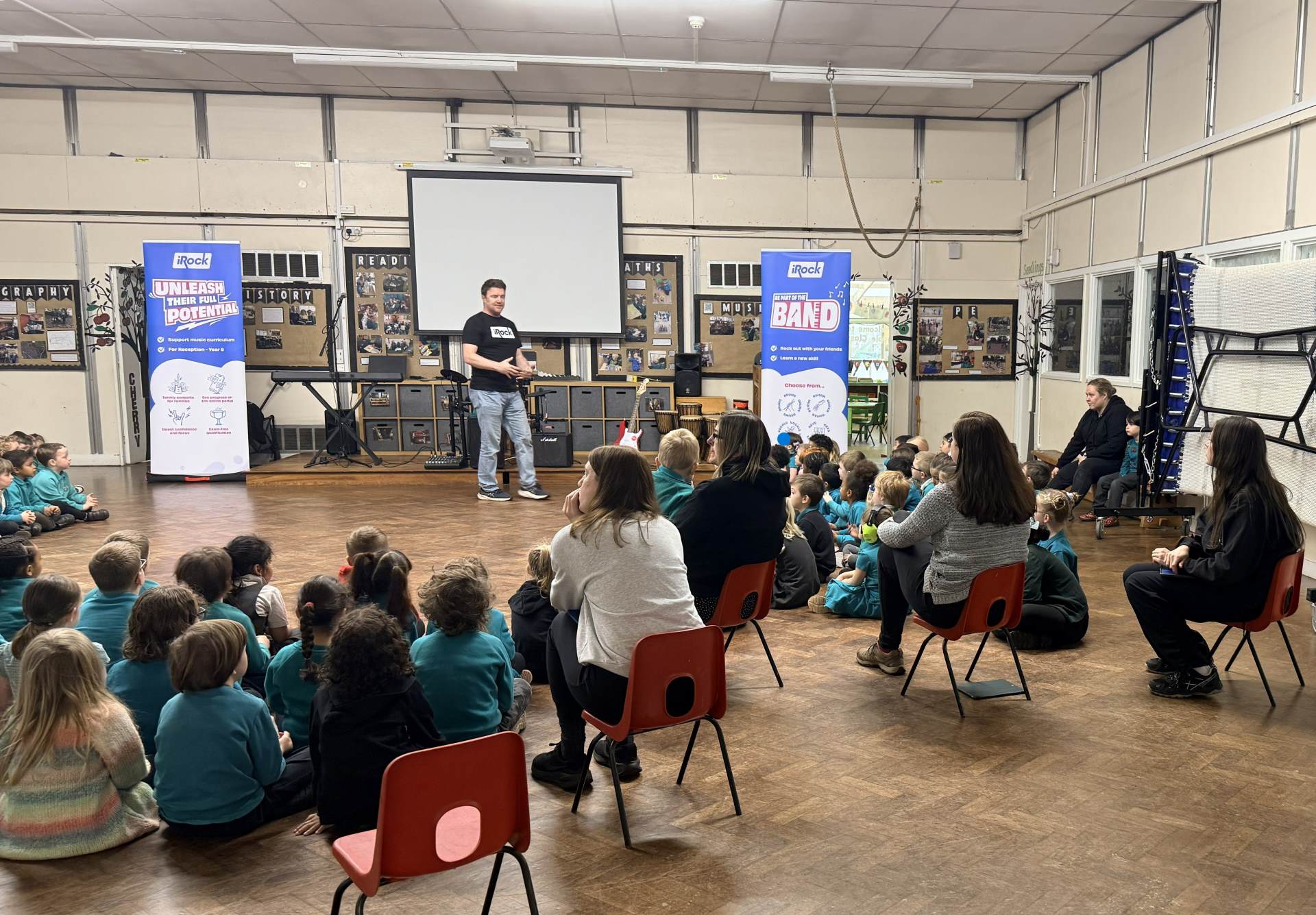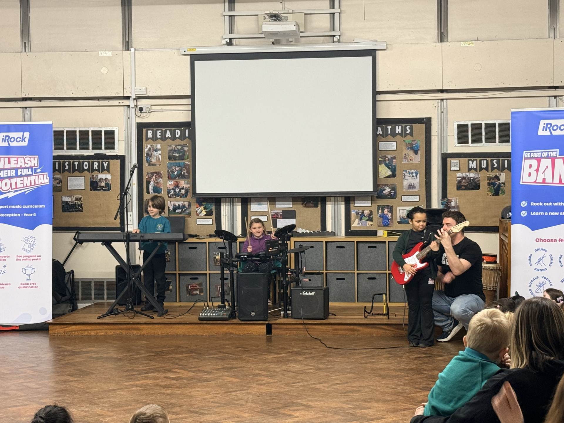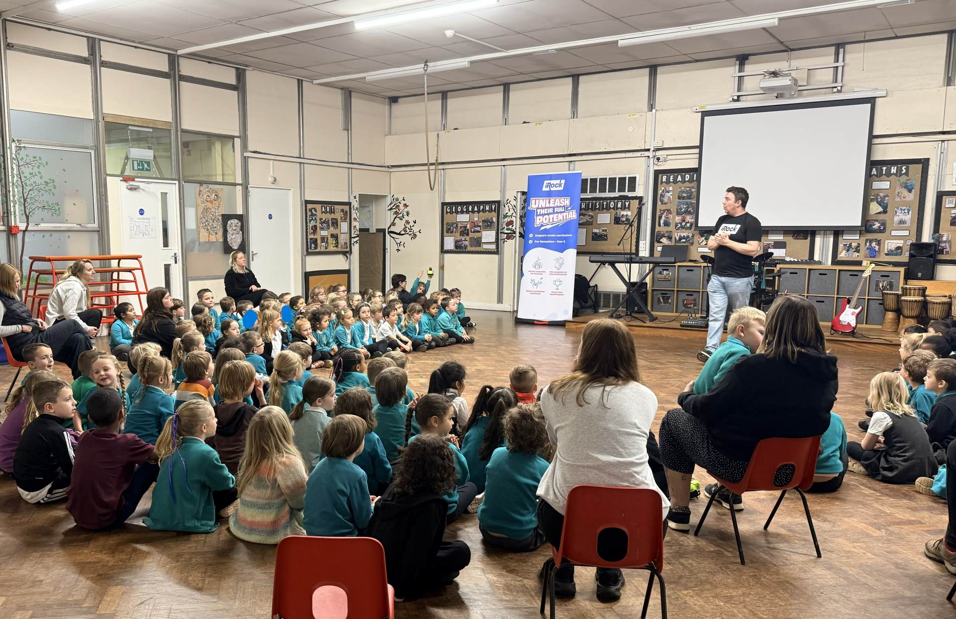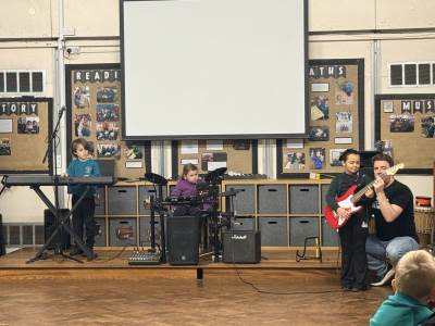 The children had a wonderful time at the iRock assembly this morning and thoroughly enjoyed trying the instruments! They showed great enthusiasm and were keen to take part. It was a lively and enjoyable session for all.