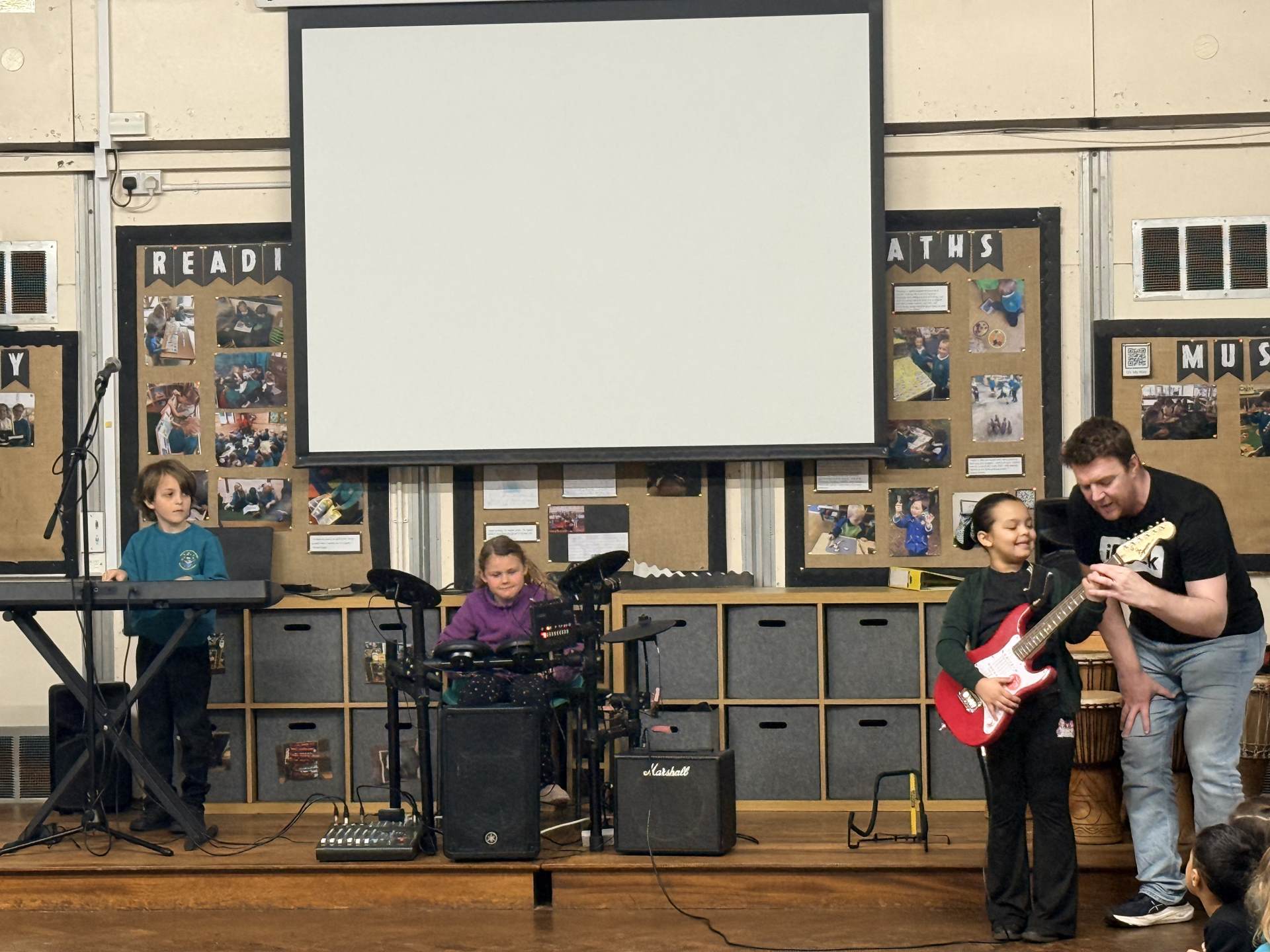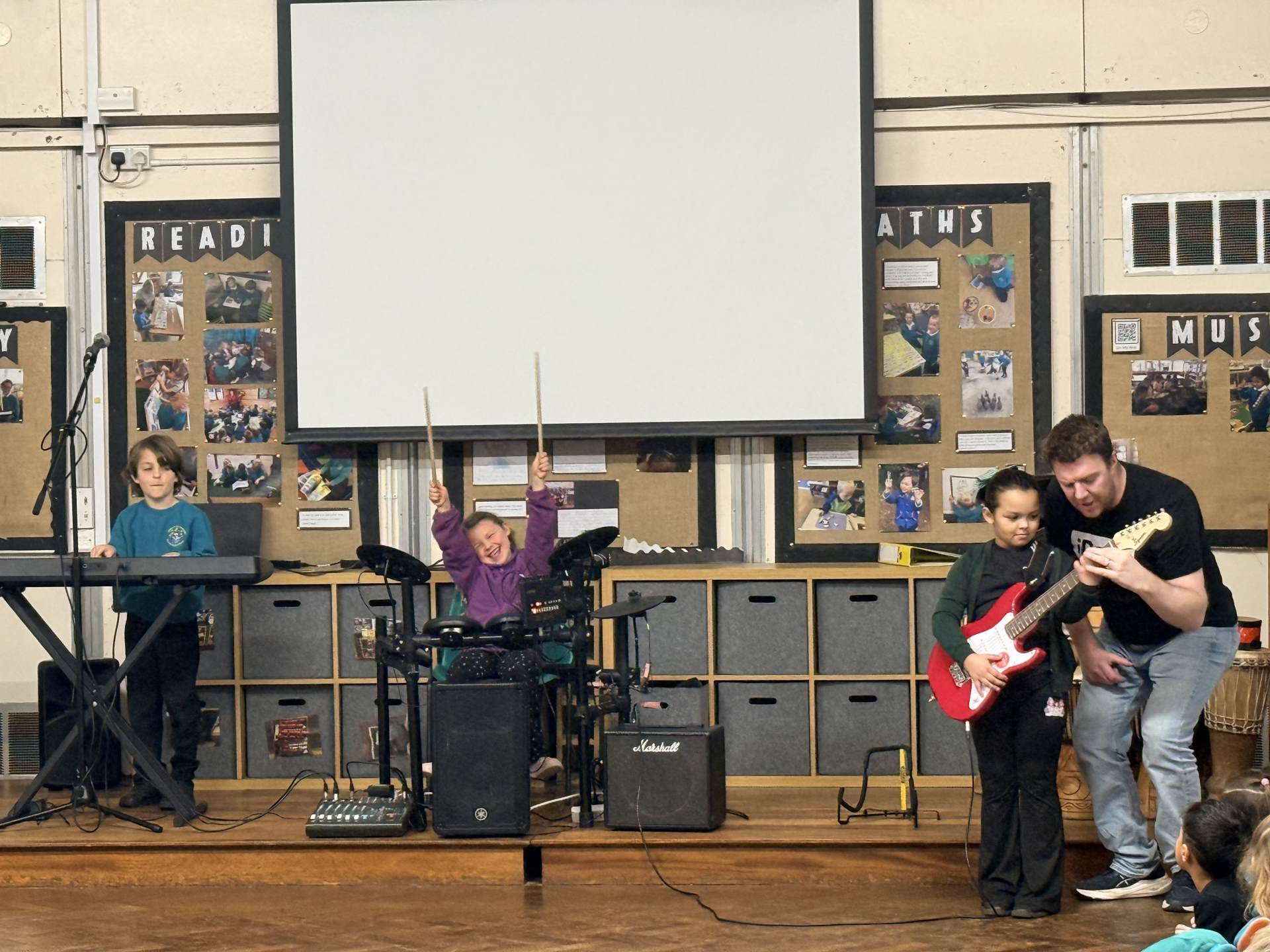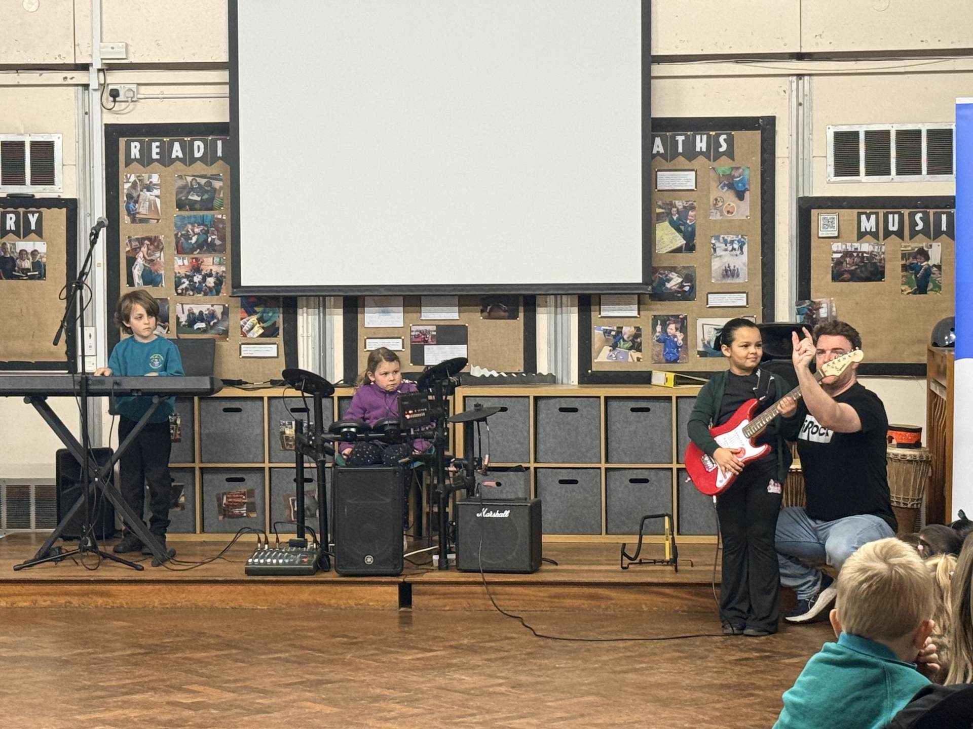 The children had a wonderful time at the iRock assembly this morning and thoroughly enjoyed trying the instruments! They showed great enthusiasm and were keen to take part. It was a lively and enjoyable session for all.