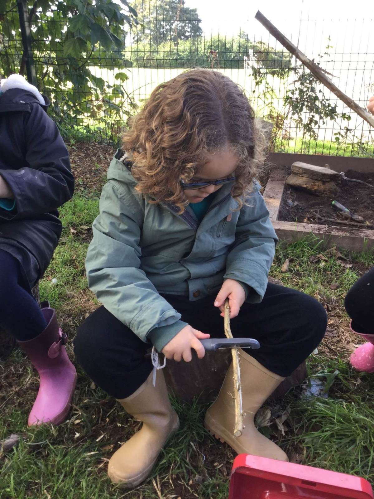 We have weekly Forest School sessions which are either on school site or in the local area- Eastwood Farm or Nightingale Valley.