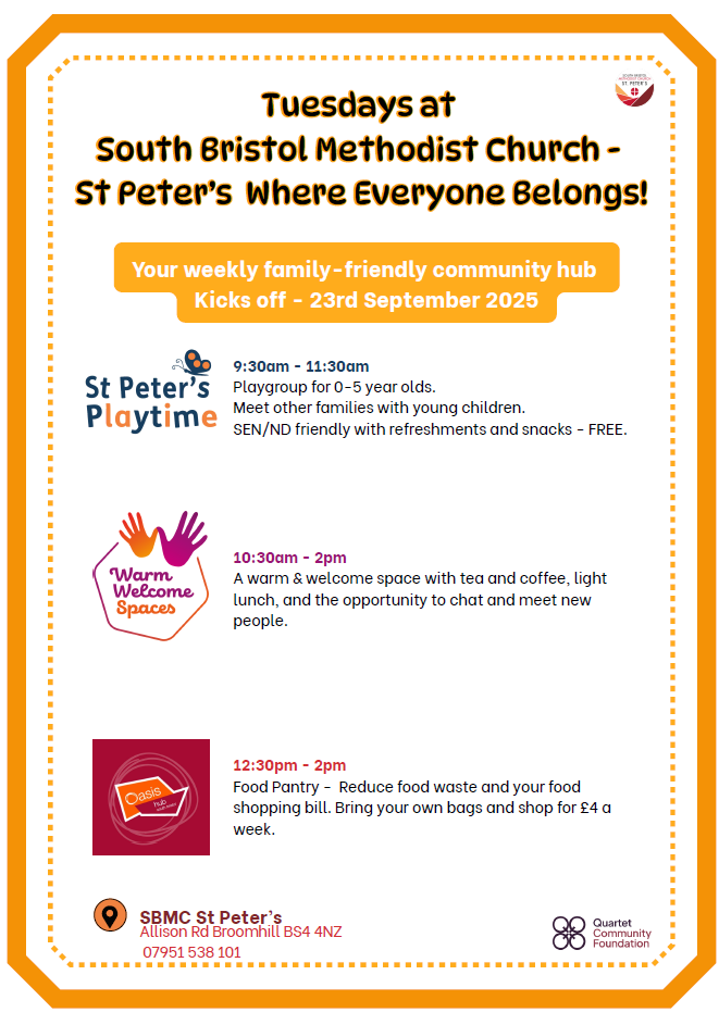 We’re excited to share two new initiatives at South Bristol Methodist Church - St Peter’s